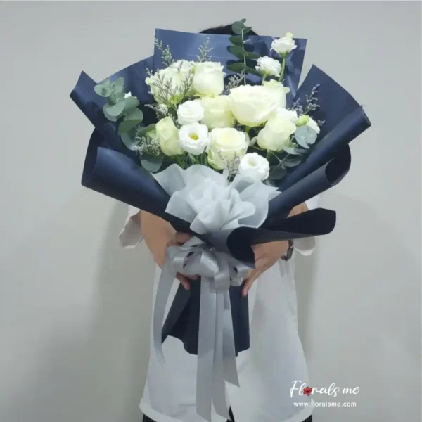 FR92 ELEGANT NAVY WHITE ROSES BOUQUET